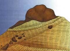 Não sendo um processo de vulcanismo explosivo, mas de inundação, as lavas, muito fluidas, a 1200 graus centígrados, espalharam-se sobre as dunas de areia, preservando suas formas. Em suma, cobriam as dunas e, no longo tempo em que todo o processo perdurou, passaram a constituir as elevações sobre as quais hoje está construída a cidade. Ao se resfriarem, as lavas acrescentaram às formações arenosas, outros tipos de rocha, chamadas de basalto e diabásio. Essa lava, pastosa e incandescente, cobrindo os depósitos de arenito já existentes, ajudou a dar forma à elevação conhecida por Cuesta.