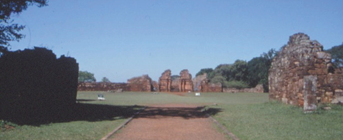 Quando os jesuítas construíram um mínimo de instalações para seu abrigo e de seu gado, as fazendas jesuítas passaram a ser uma referência a mais para os viajantes, de maneira que as caravanas paravam ali, para que seus componentes refizessem as energias e seguissem viagem. Ao fundo, à beira do Paranapanema, um rudimentar porto para as canoas que íam e vinham. Nas instalações, uma espécie de estalagem.
