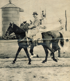 chapéu de cowboy e capa de borracha, acompanhado do irmão George. Ainda chovia.